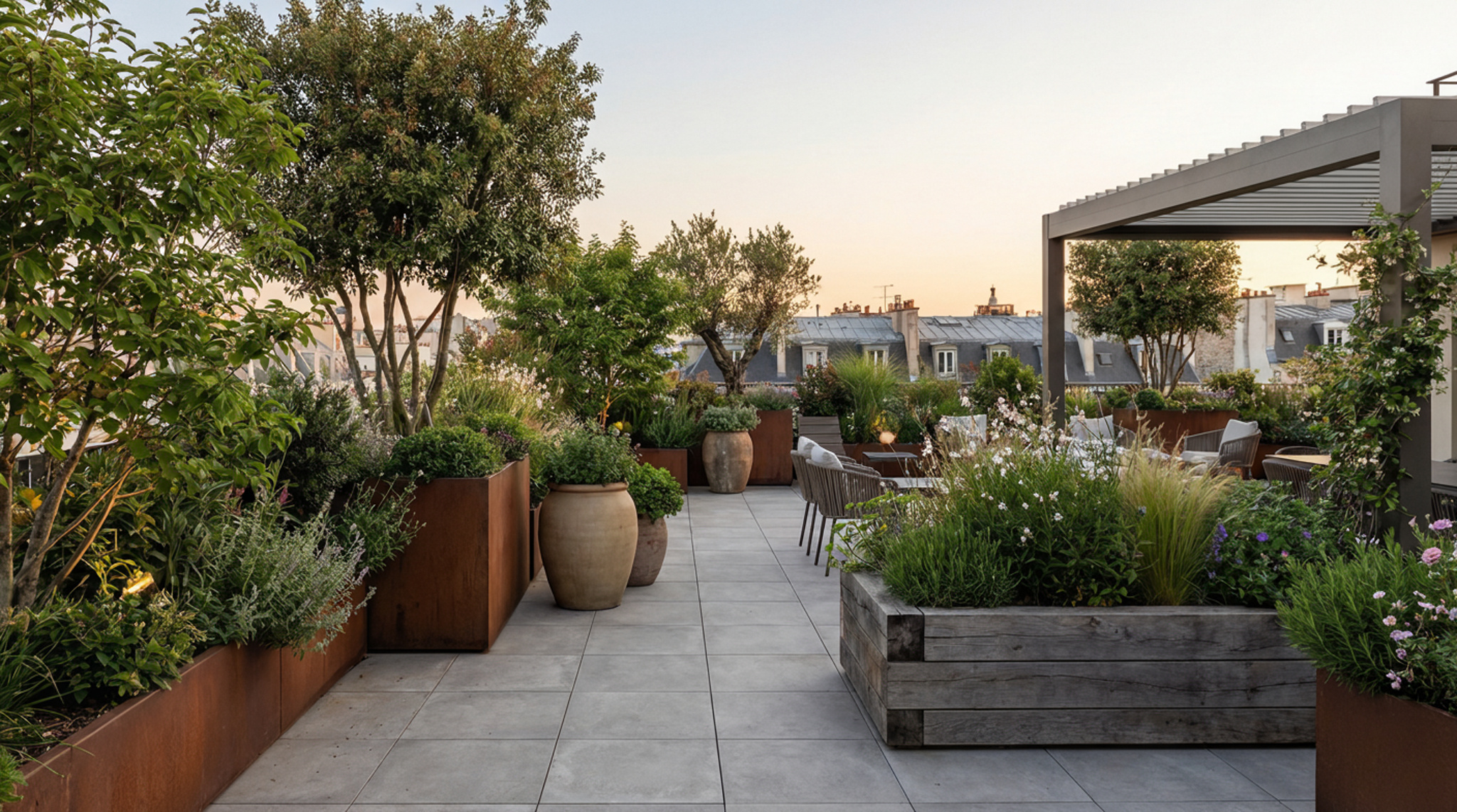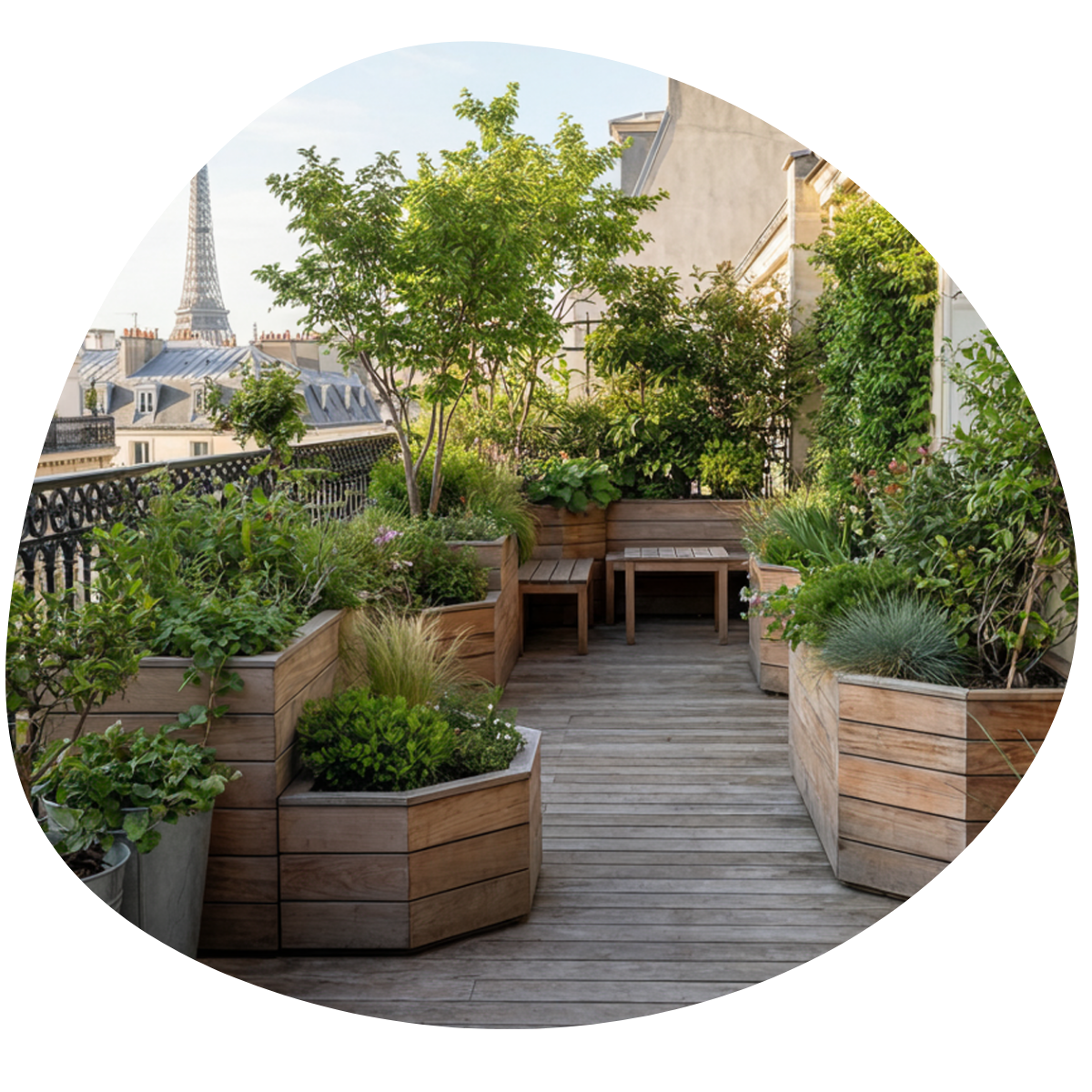Offrez à vos collaborateurs un rooftop inspirant, ou créez un coin de nature sur votre terrasse privée.Nos aménagements s’adaptent à tous les usages : espace de travail, lieu de réception ou jardin suspendu.